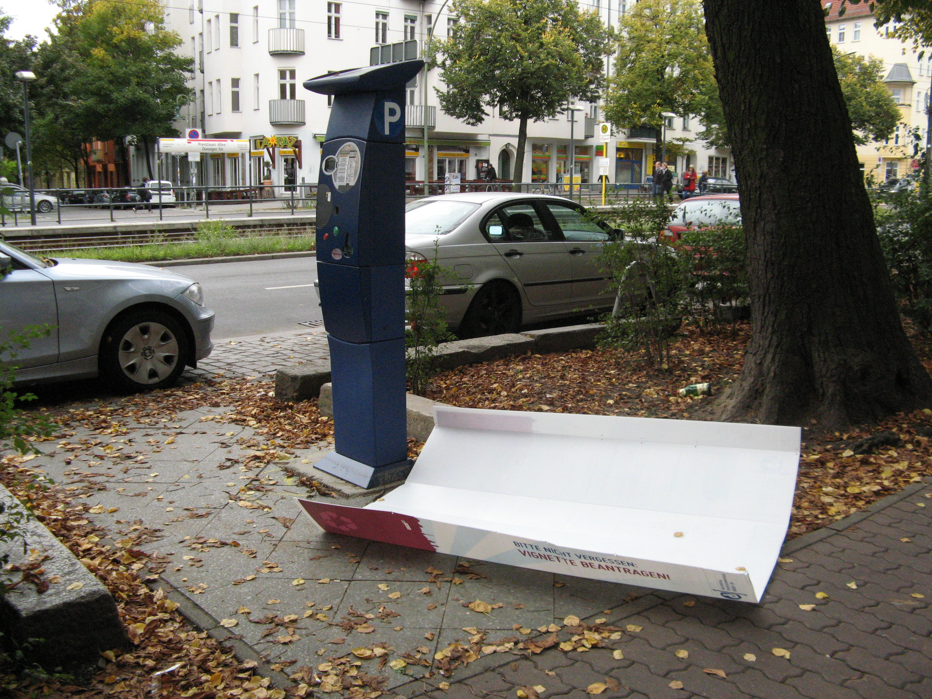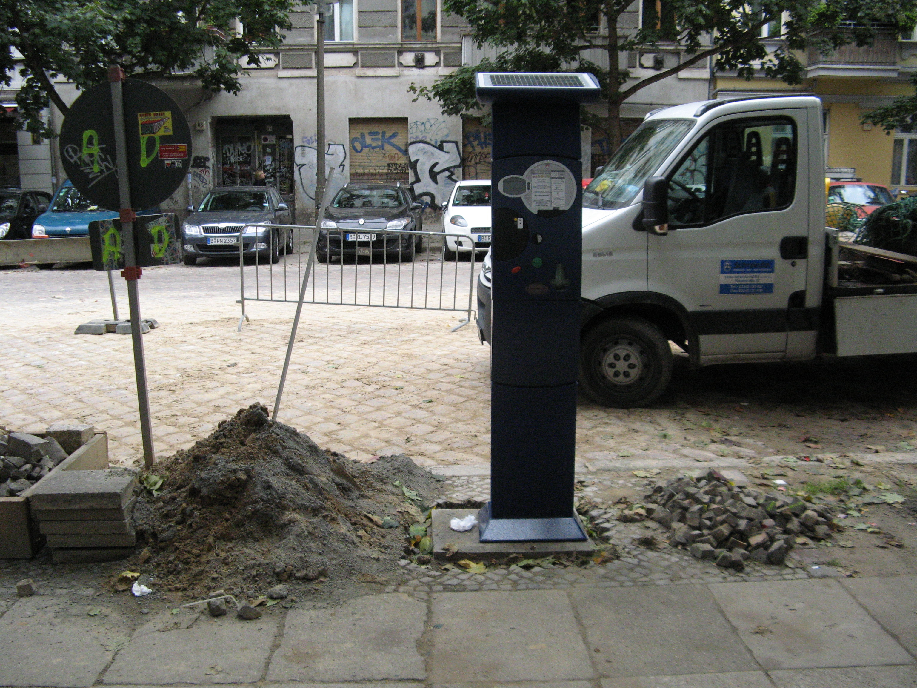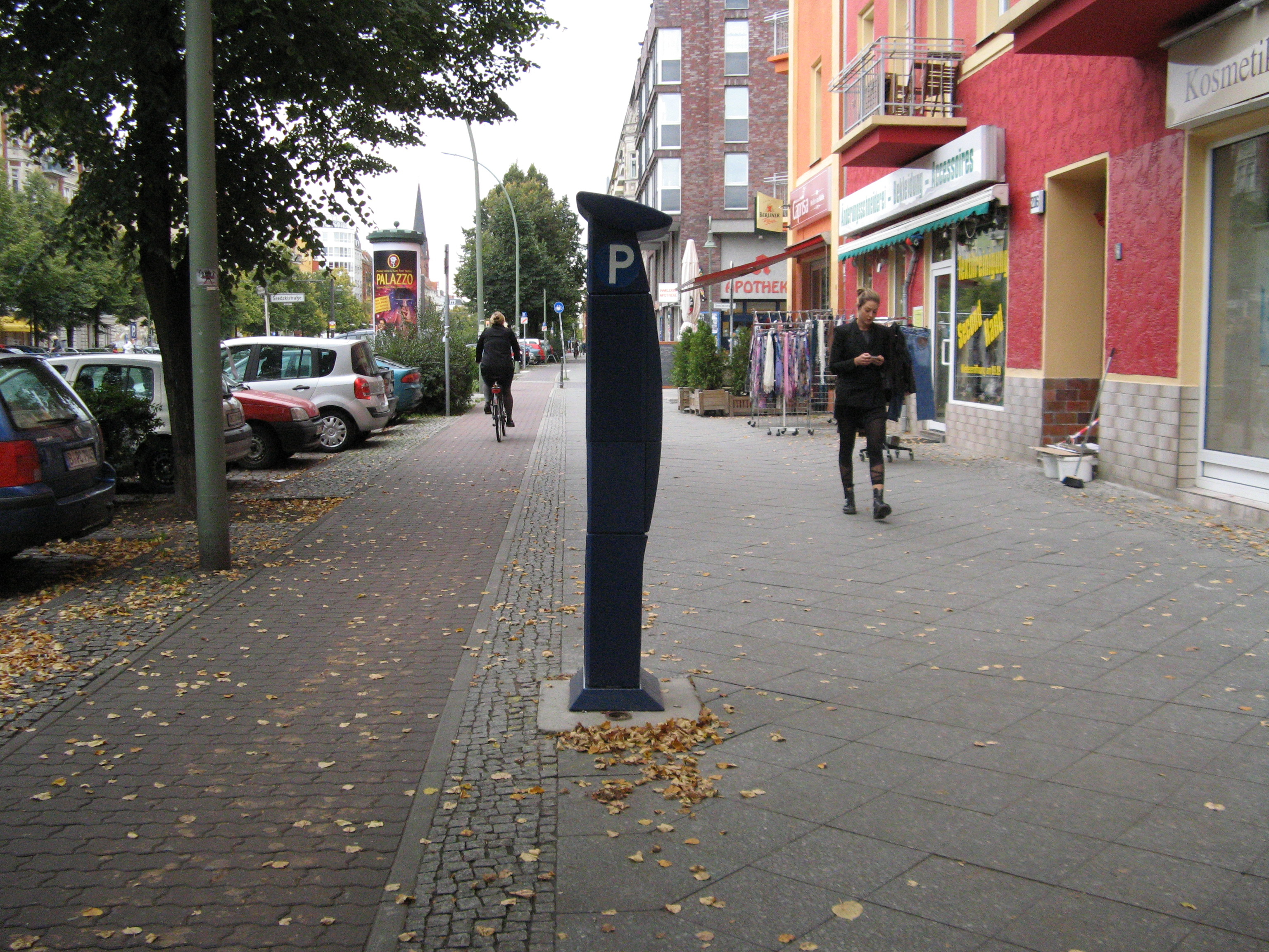 Und so sieht es in Berlin aus, wenn man am nächsten Tag fürs Parken einen Parkschein und demnach flächendeckend Parscheinautomaten benötigt:
