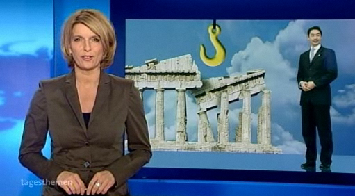 Nun ist es allerdings so, das soll der Fairness halber nicht unerwähnt bleiben, dass es nicht einmal unbedingt eines Gleichnisses mit Schirm bedarf, um den Euro dank Photoshop absonderliche Dinge erleben zu lassen. Ganz recht, liebe Kollegen von den Tagesthemen, ich spreche von Ihnen: