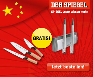 Ein Messerset! Gratis! Dass dafür gleich ein Riesenreich wie China seine Führungsriege austauschen muss, erscheint mir zwar ein wenig übertrieben. Aber hey, da sind funky Zeichen drauf auf den Messern.
