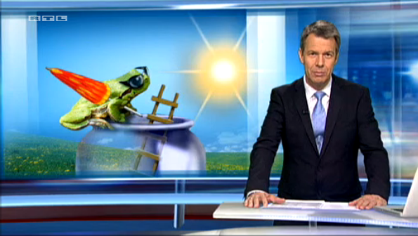 RTL ist doch ein nie versiegender Quell der Freude. Allein die Fantasie, mit der man die Bluebox hinter Peter Kloeppel stets neu zu gestalten versteht, begeistert mich immer wieder. So geschehen auch gestern, als es einen Beitrag über den uns nach diesem novemberesken Mai zustehenden Jahrhundertsommer anzumoderieren galt: